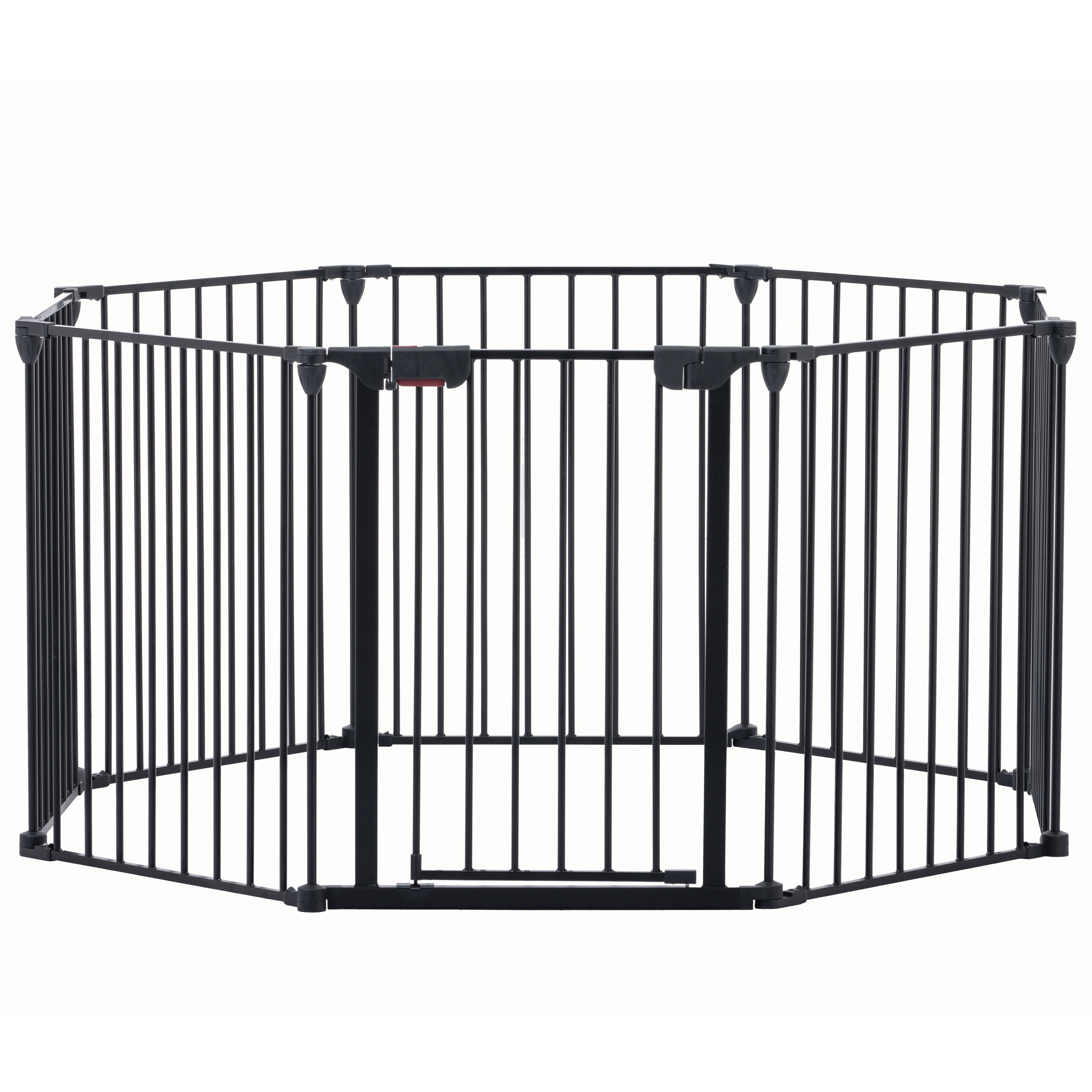 4-IN-1METAL SAFETY GATE: 1. Pet Gate - It can be used as a freestanding pet gate when you set it up as a circular enclosure; 2. Safety Fence - Suitable to use around fireplaces, grills, wood burning stoves, Christmas tree, etc. 3. Play yard: Set up sectioned off areas in your home for your toddlers or pets; 4. Barrier: Solid construction make this a great option for creating room dividers; 5. Baby Gate - Great for wide spaces, angled openings, hallway, doorway or bottom of stairs