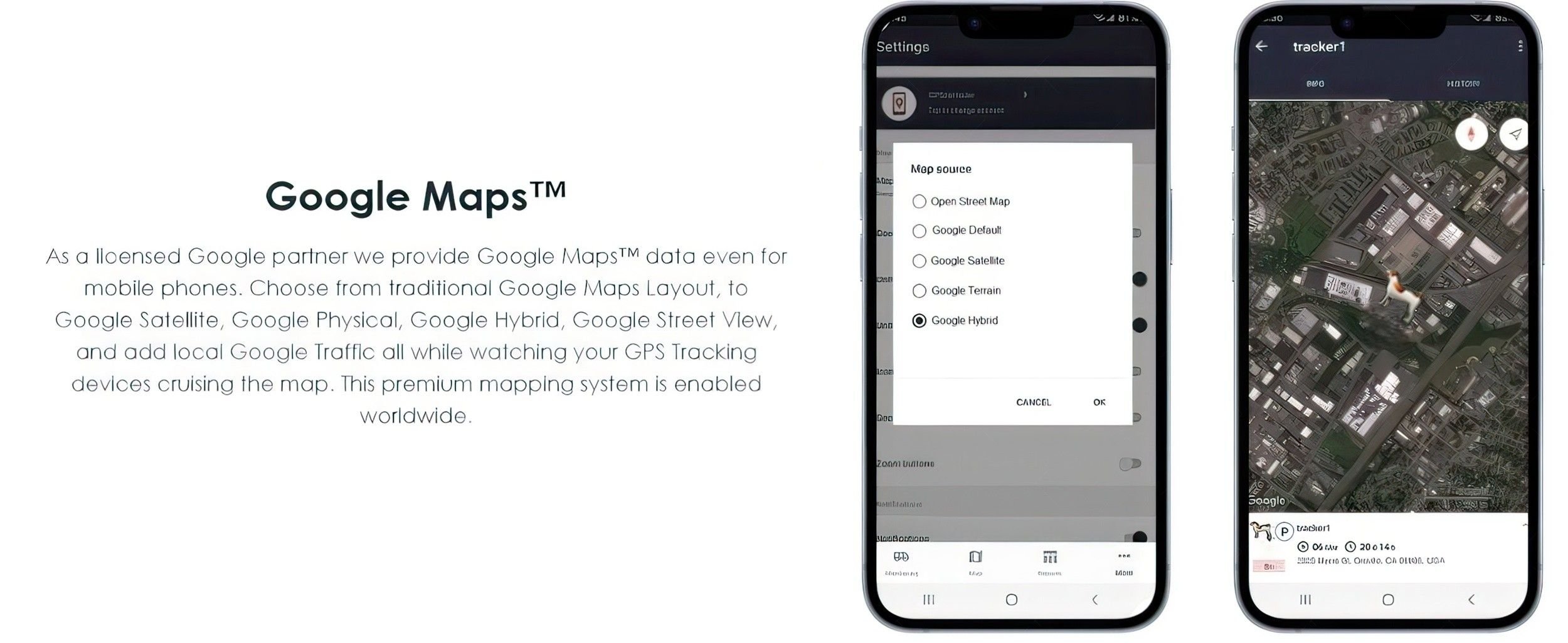 You are already familiar, so we are using Google Maps™ enabled mapping system with all the features. Satellite view, Street View, Hybrid View, Add Local Traffic View, Zoom In/Out, Business Names, Street Names ,POI Names, and More…
