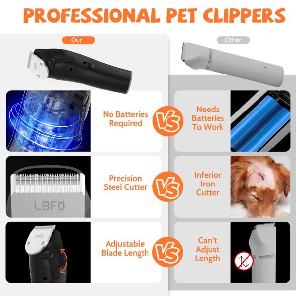 • LOW NOISE DESIGN -we have meticulously crafted our pet hair remover to emit a minimal noise level, minimum noise measuring below 55 dB. dog clippers for grooming create a grooming experience that is gentle, soothing, and free from any potential risks for your pet. Tips: We recommend working from the lowest power.