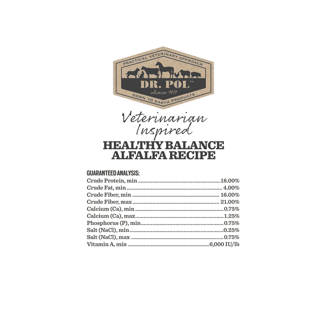 Your bunny will thrive with Dr. Pol Healthy Balance Alfalfa Recipe Rabbit Food! This wholesome, alfalfa-first recipe is a complete and balanced feed with added vitamins and minerals that is perfect for all breeds and classes of rabbits, dry does, pregnant/lactating does, and growing rabbits. Higher levels of Vitamin A support growth, eye, and reproductive health while papaya and prebiotics keep the feed easy on your rascally rabbit’s digestive track. With more than 50 years of experience in veterinary medicine, Dr. Pol knows the #1 factor impacting an animal’s health and life span is nutrition. Dr. Pol shares his passion for animal care and his practical approach through these Veterinarian Formulated recipes. This high-quality rabbit food is designed to help you provide the very best nutrition while addressing common challenges encountered with rabbits. Dr. Pol Healthy Balance Alfalfa Recipe Rabbit Feed is extruded and gently cooked in an easy-to-eat oat shape that packs every bite with delicious, consistent nutrition that will have your beautiful bouncing bunny coming back for more. Discover the Dr. Pol Difference today!