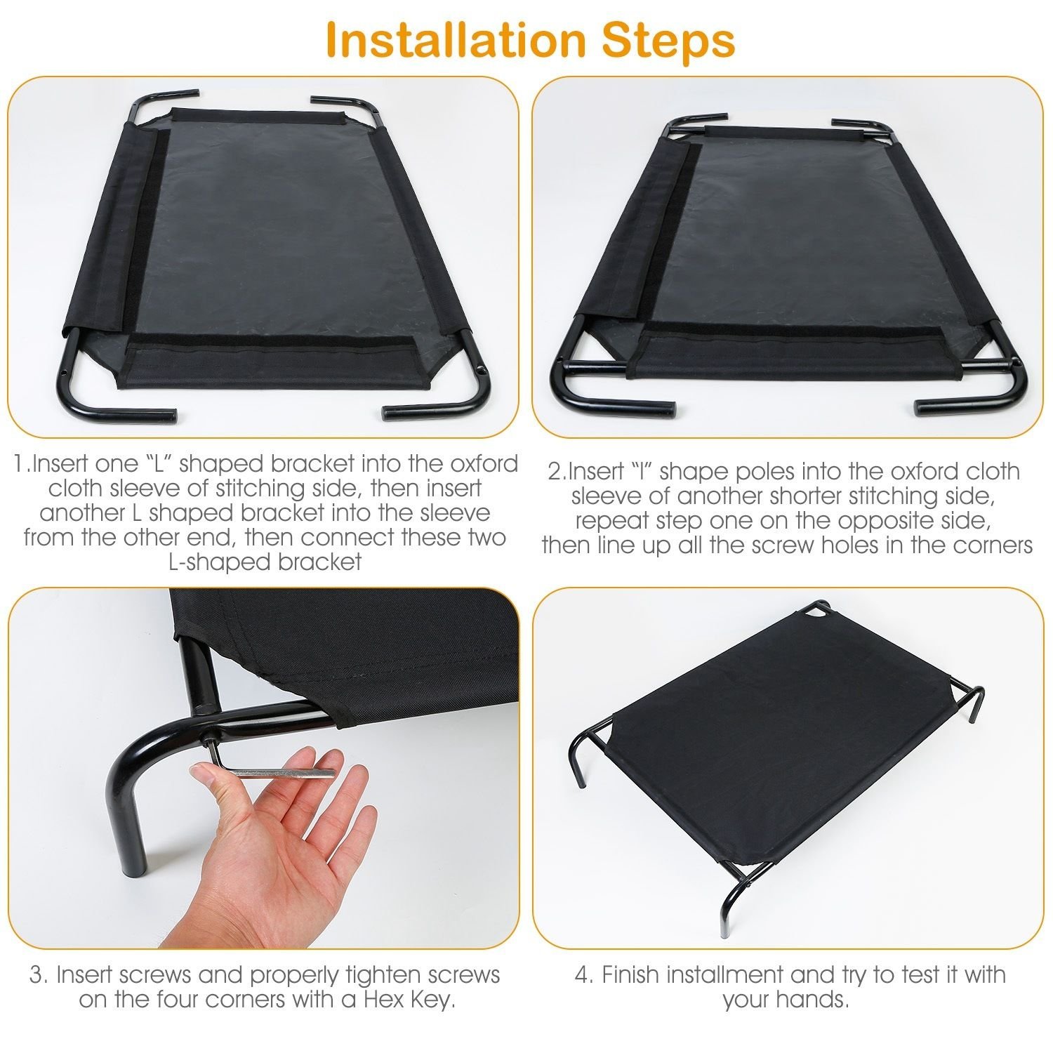 *Breathable & Durable Made*:Made from heavy-duty steel and high-density oxford fabric materials; well-built frame helps the pet bed stable and safely elevated for your dog to rest easy on. Durable sleeping surface supports your pets comfortably and resists rips from claws