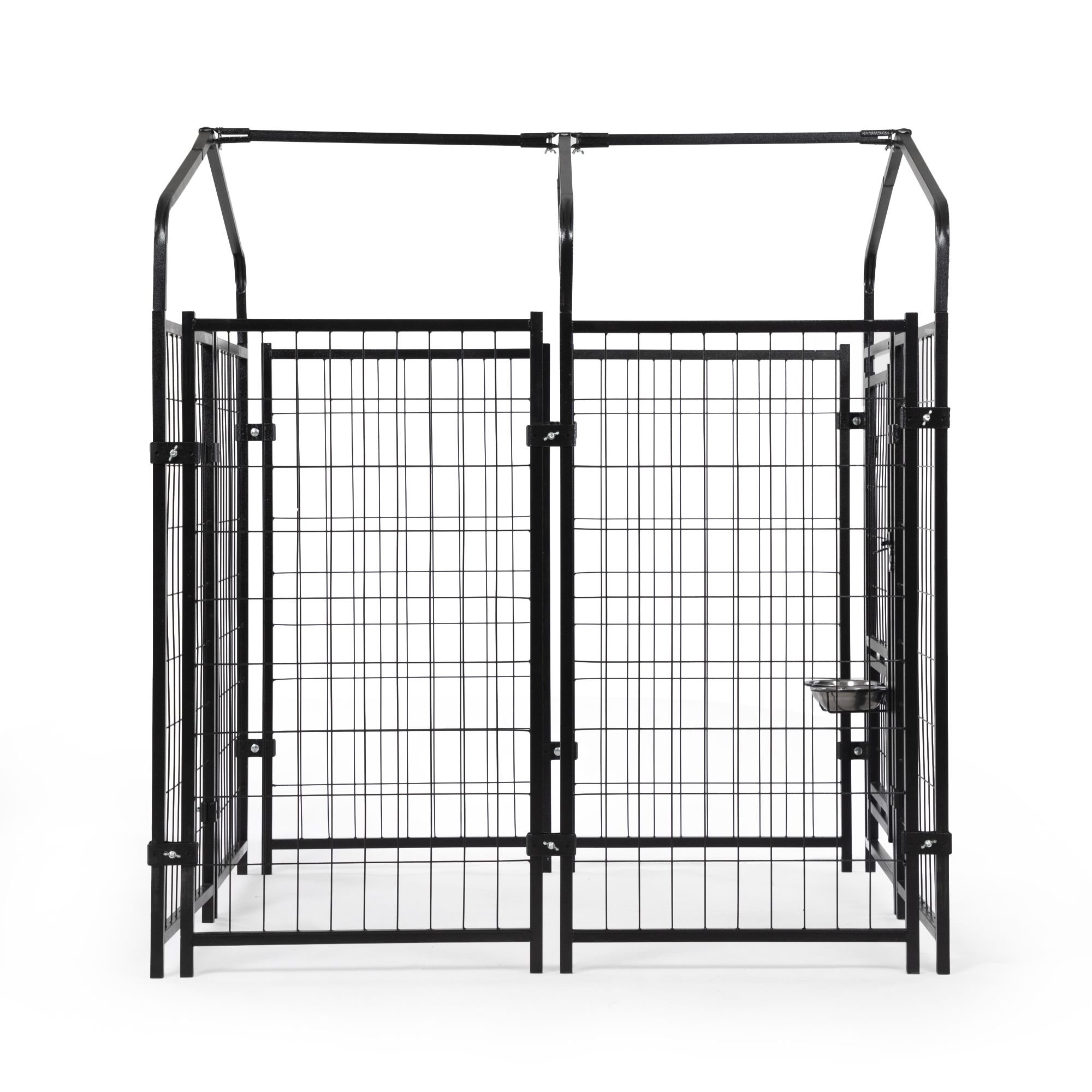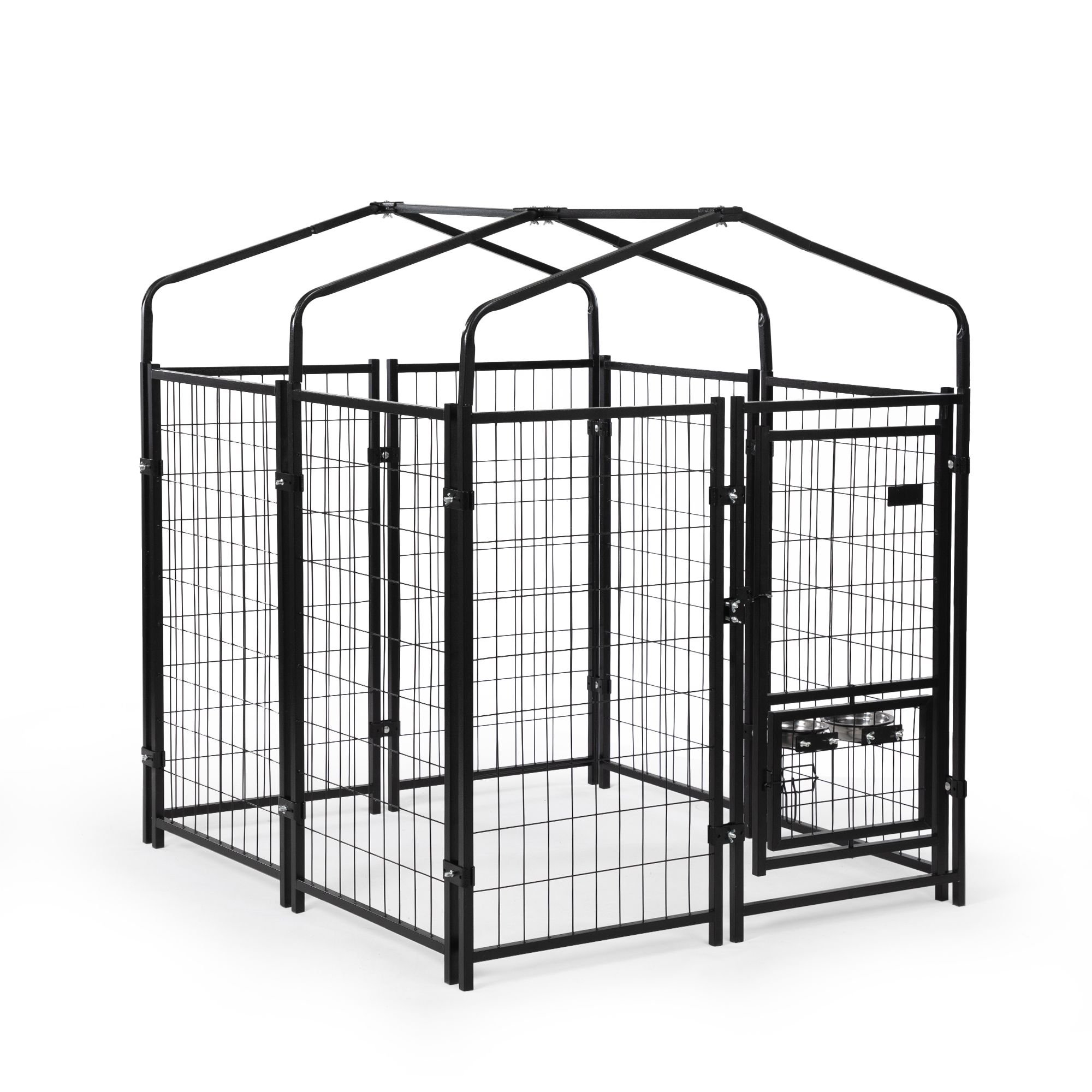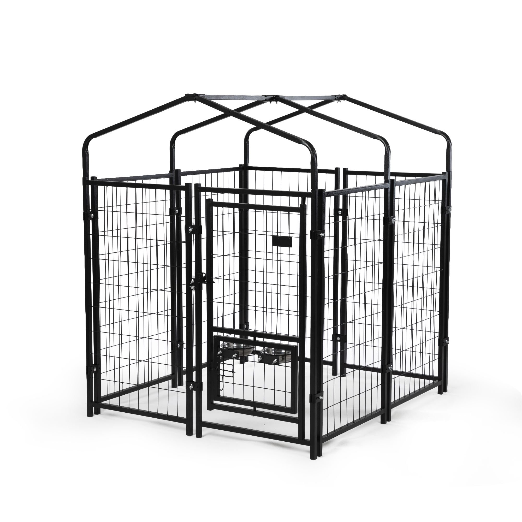Heavy Duty Dog House, Dog Pen with Roof, Reversible Feeding Door, Stainless Steel Feeding Bowls, Dog Fence Cage for Small to Large Dogs