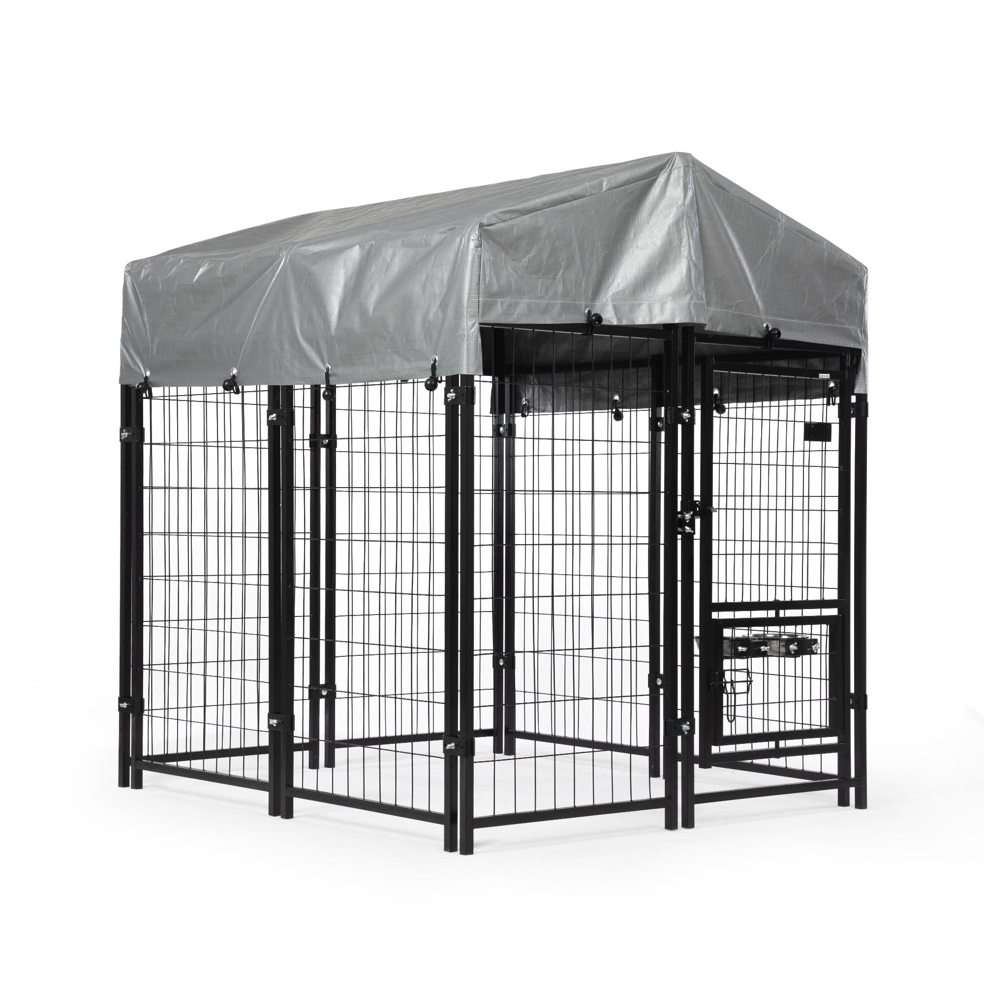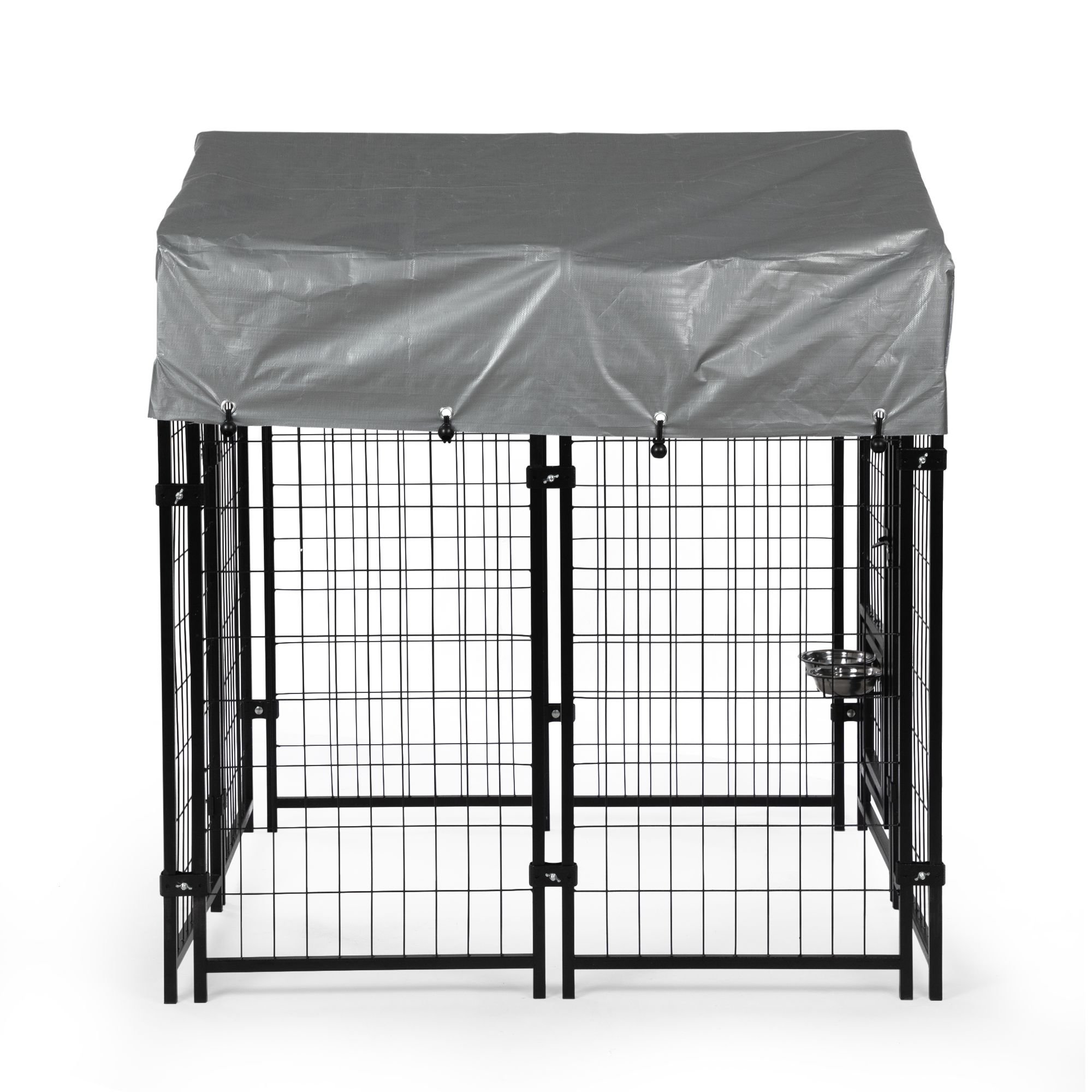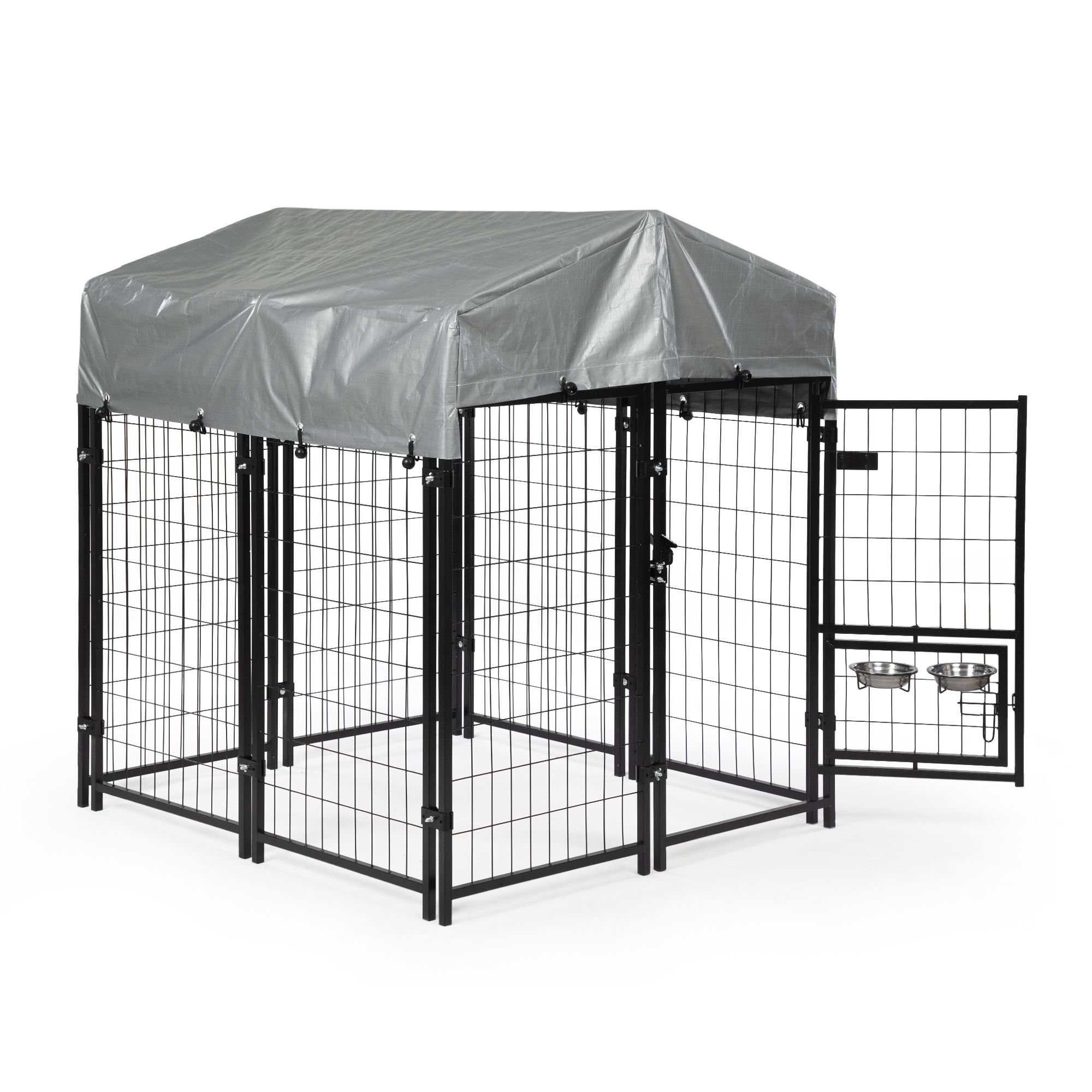 Heavy Duty Dog House, Dog Pen with Roof, Reversible Feeding Door, Stainless Steel Feeding Bowls, Dog Fence Cage for Small to Large Dogs