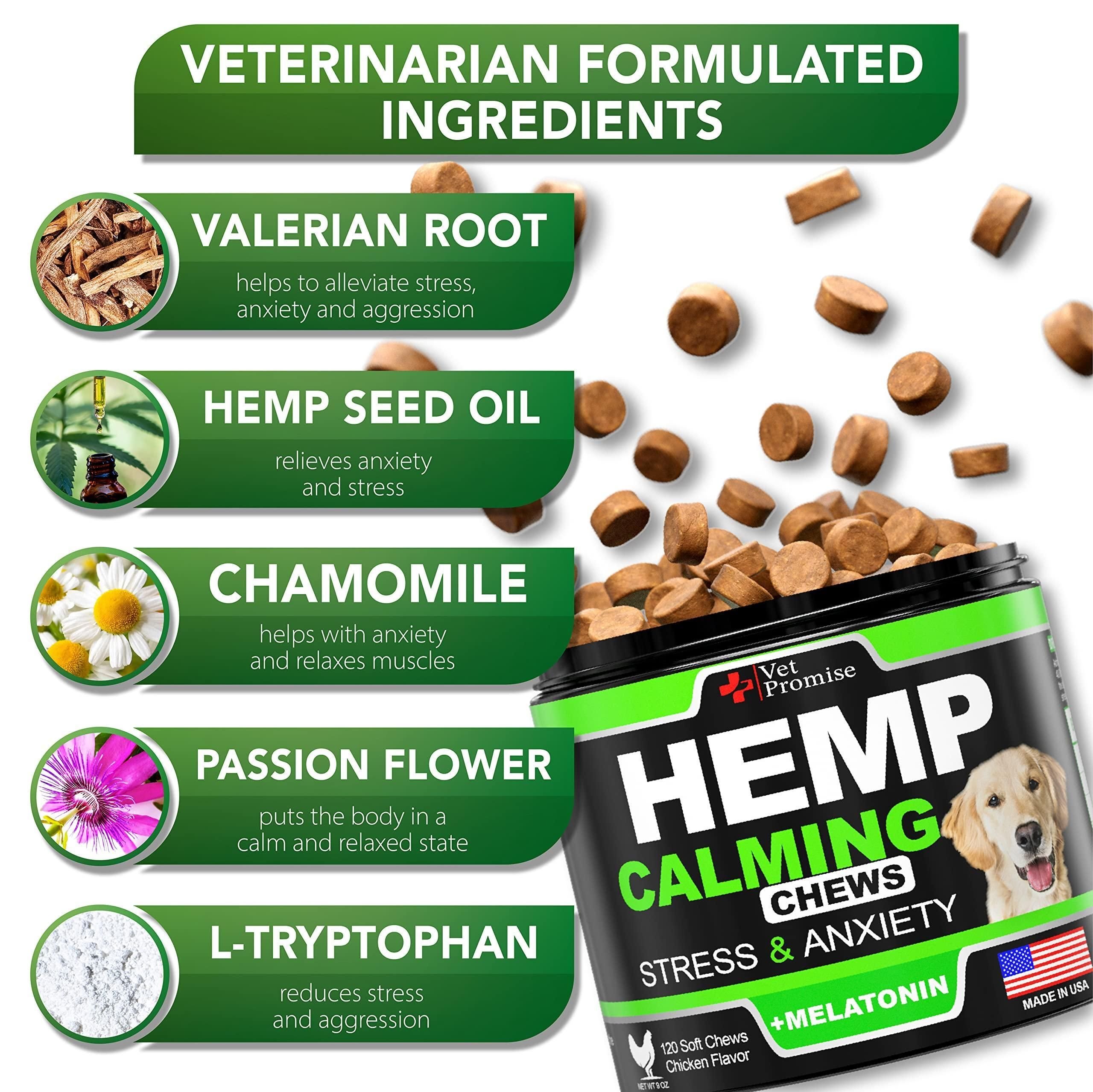 1.advanced calming aid our hemp dog treats for calming are specially formulated to soothe your dog's moderate to hyperactive behavior, such as barking, growling, or running, caused by stressful events