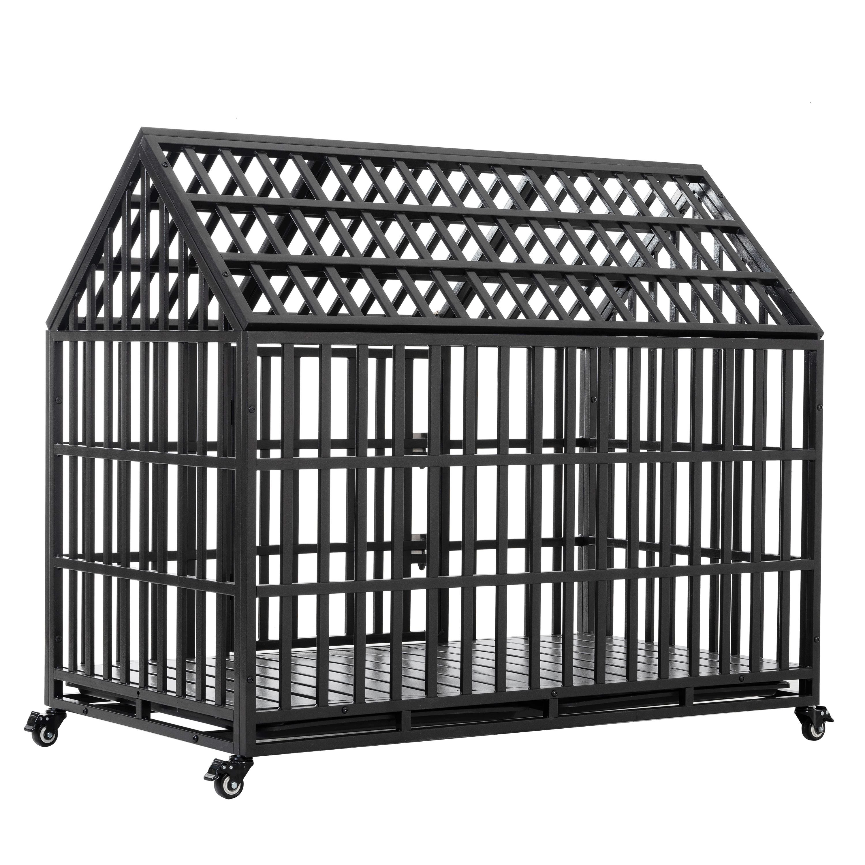 52" Heavy Duty Dog Crate Large Dog cage Strong Metal Dog Kennels and Crates for Large Dogs with 4 Lockable Wheels
