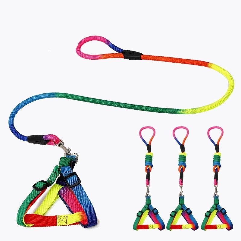 Home > 1 Set Nylon Rainbow Pet Dog Collar Harness Leash Soft Walking Harness Lead Colorful and Durable Traction Rope 120cm