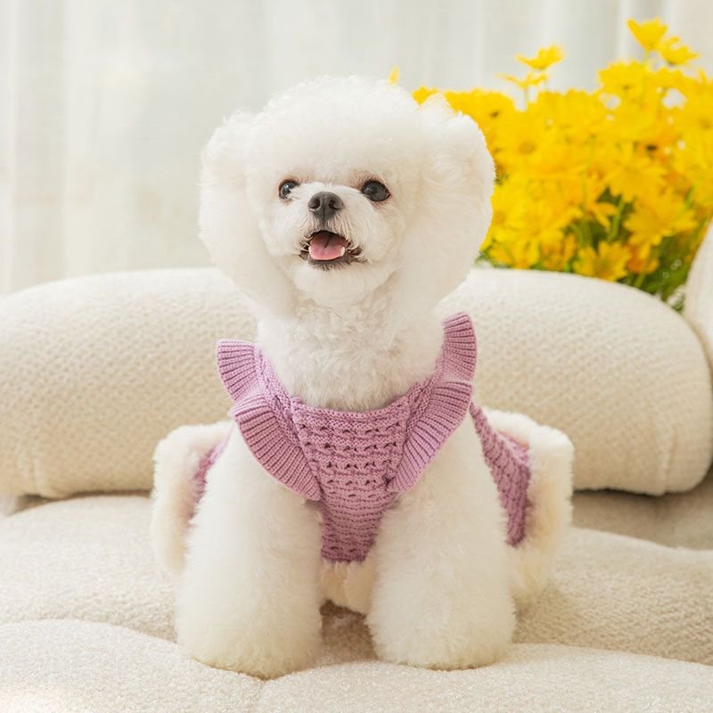 Warm and thickened dog clothes in autumn and winter; bow sweater skirt; dog sweater