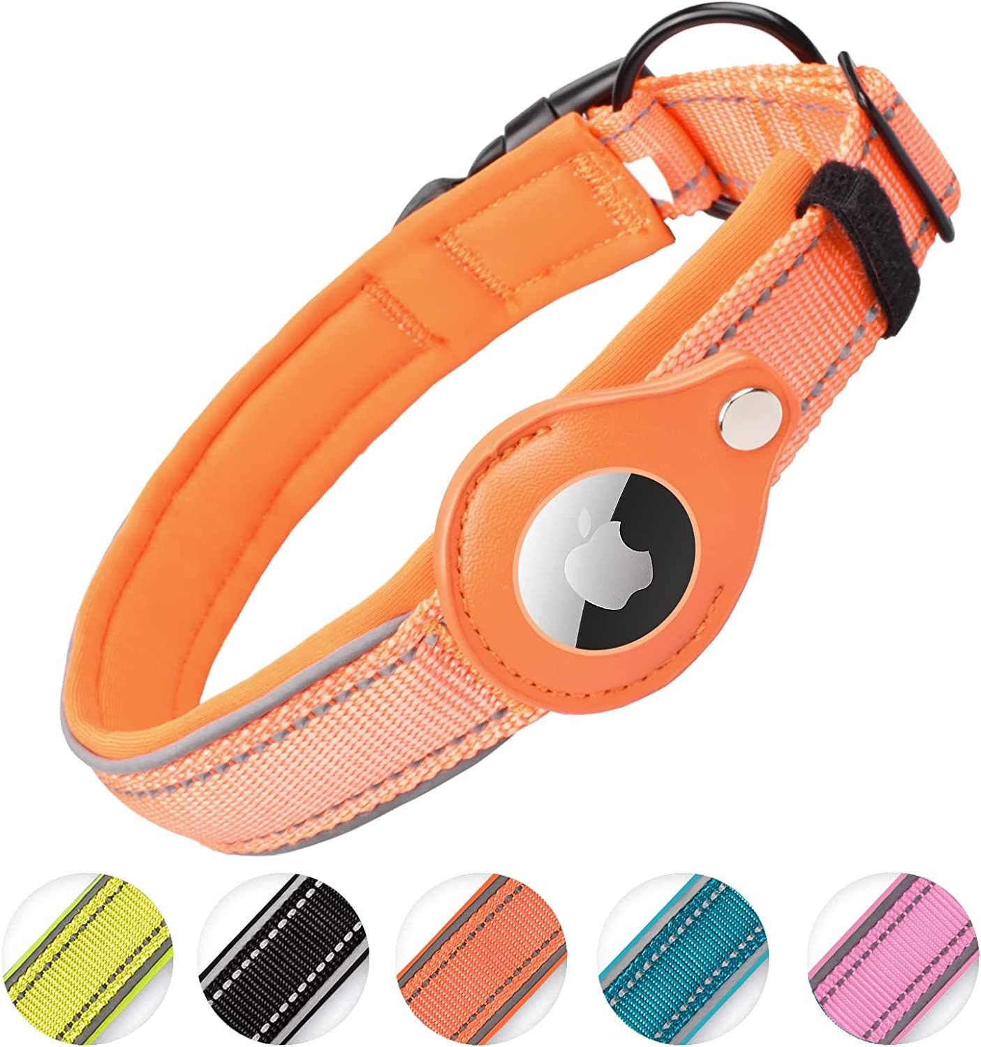 INTEGRATED DESIGN FOR AIRTAG: Are you always wondering where is your dogs or cats? Or are you always trying to find him/her? We're proud to announce our latest AirTag Dog Collar; integrated the AirTag Holder with premium basic Dog Collar. With our AirTag Dog Collar; allows you to keep tracking your beloved ones! (Note: The AirTag is not included) FIRM & COST EFFECTIVE: Bolting with the screw; the built-in leather pocket as Dog AirTag Holder is a perfectly fit and prevents your AirTag to lose or drop from it. 100% firmly combined with the Dog Collar; ensures your Apple AirTag stay connected with your dogs/cats. Plus; you won't need to purchase other detached; easily lost AirTag products. PREMIUM MATERIAL: Designed with premium material; reflective stripe; waterproof webbing and strict stitching ; our Air Tag Dog Collar is also featured with soft neoprene padding; prevent your dog's from any irritation or discomfort. No sharp edges or unfold sewing join; and sturdy premium plastic buckle and alloy D-ring ensures your dog's safety. PRODUCT FUNTIONS ENGINNERING: Our Air Tag Dog Collar is more convenient to release with the one-hand quick release buckle; and the D-ring provides a secure attachment for your dog leash and hanging accessories. The strong reflective stitching and edges make your dog's easier to be seen in darkness; safer for walking; running or jogging in the wild. MULTIPLE SIZE OPTIONS: The whole package includes: Airtag Dog Collar x1; Screwdriver x1. Our heavy duty Dog Collar comes with 4 colors and 4 sizes; perfect for small; medium and large dogs. Please measure your dog's neck before your purchase. S: 12"-14"; M: 15"-18"; L: 17"-20"; XL: 19"-22". (Neck Circumference in INCHES)