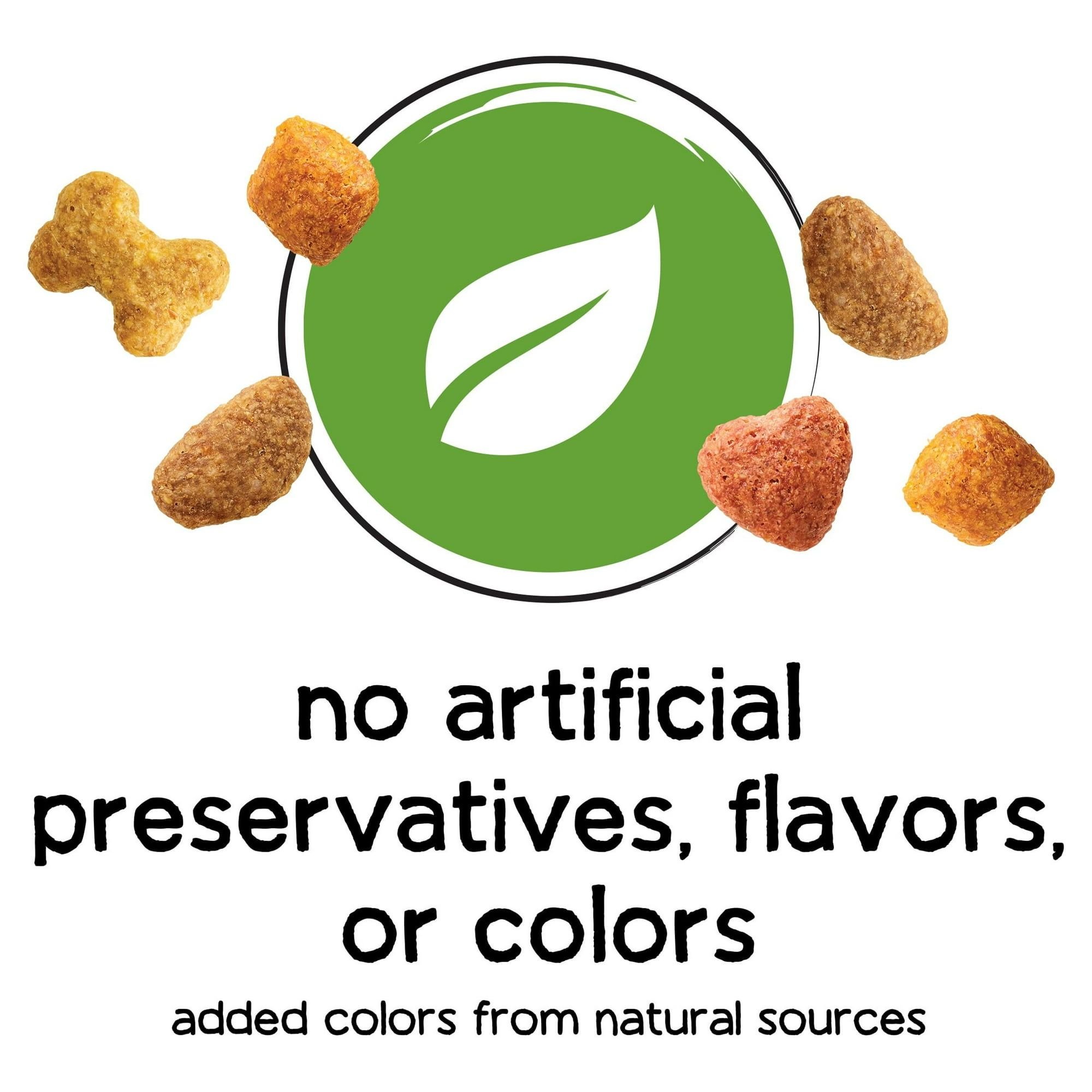 Beneful dog kibble with added vitamins, minerals and nutrients has a naturally delicious taste with no artificial preservatives or flavors and added colors only from natural sources