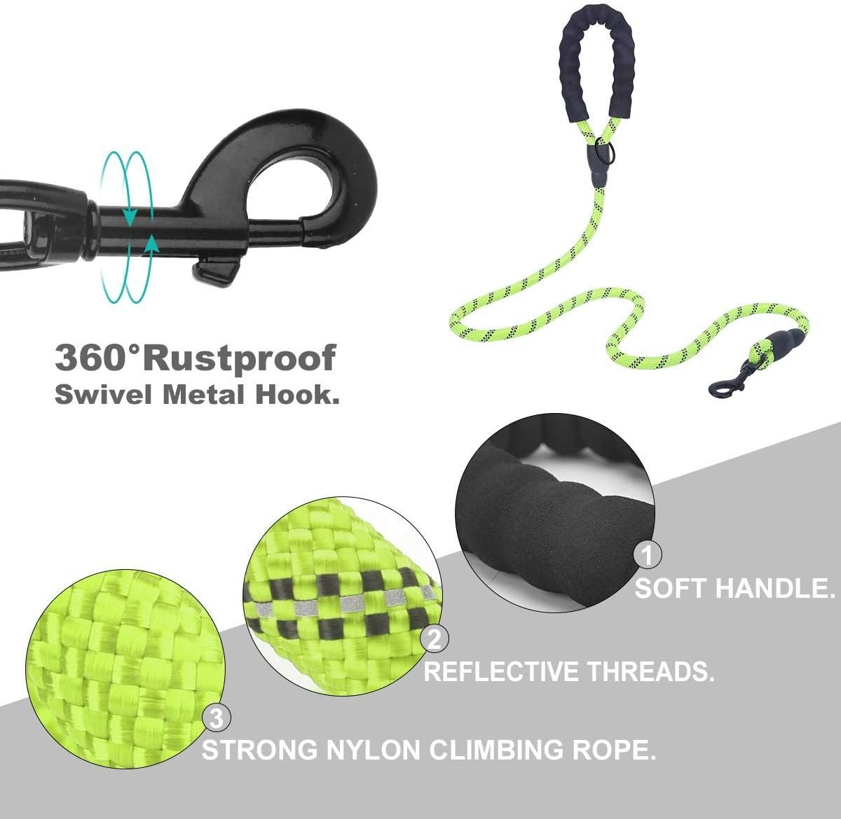 Comfortable Padded Handle: The strong dog leash with padded handle makes it more vomfortable to hold and warp around your hand and protect your hand from rope burn. Just enjoy the feelings walk with your dog.